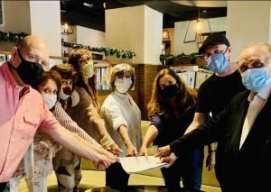 El productor Carlos Rottemberg compartió en las redes de su sala la foto con las actrices "poniendo el dedo" a modo de contrato formal.