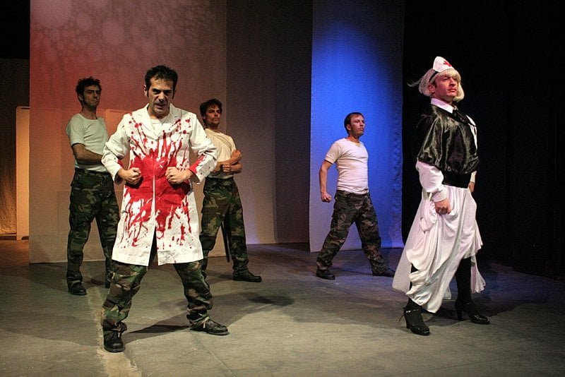 Gustavo Monje, Gonzalo Alfonsín, Diego Recagno, Luciano Cohen y Alejandro Paker conforman un elenco sólido con un texto que genera metáforas tanto dialogadas y visuales. Correctos en sus interpretaciones, graciosas y dramáticas, en las que no faltan hasta canciones y bailes.