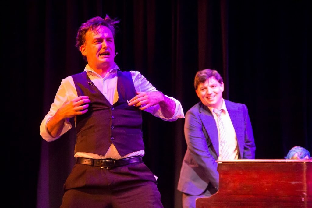 Parodiando las novelas de Agatha Christie, en 90 minutos se deberá resolver el misterio, en un desopilante interrogatorio a una variedad de despoliantes personajes.El brillante musical creado con maestría por Joe Kinosian y Kellen Blair, suceso del off Broadway newyorkino, adaptado por Marcelo Kotliar, es una mezcla perfecta de música, policial y comedia.Elogiada por la crítica y el público, sus dos protagonistas son dignos de aplausos de pie. Ambos actores tocan en vivo el piano desplegando una excelente versatilidad interpretativa. Histrionismo puro.Santiago Otero Ramos encarna 12 personajes, con uno solo girar de cuerpo, de manera majestuosa, acompañado por un prolijo y divertido Hernán Matorra. La mano de Gonzalo Castagnino como director se ven en ellos y en la cuidada puesta, con un sostenido entretenido ritmo que no decae en ningún momento.