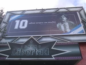 El teatro Luxor, el Holiday, y el Libertad lucieron una foto de Maradona junto a la frase "estarás siempre con nosotros". "Cómo no le voy a rendir homenaje al número uno a nivel mundial", dijo su propietario en diálogo con Cadena 3.
