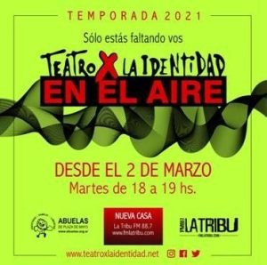 Así se presenta esta nueva temporada de "Teatro por la Identidad en el Aire", los martes a las 18hs por FM La Tribu 88.7. El equipo de ciclo 2021 está formado por: