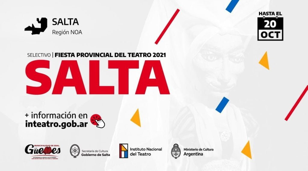 La representación Salta del Instituto Nacional del Teatro, la Secretaría de Cultura, dependiente del Ministerio de Educación, Cultura, Ciencia y Tecnología de la Provincia de Salta y la Subsecretaría de Cultura y Turismo de la Municipalidad de General Güemes, convoca a los elencos de teatro independientes de toda la provincia a inscribirse para participar de la XXVI Fiesta Provincial del Teatro Salta 2021 y selección Fiesta Nacional 2022, que se llevará a cabo del 24 al 28 de noviembre.