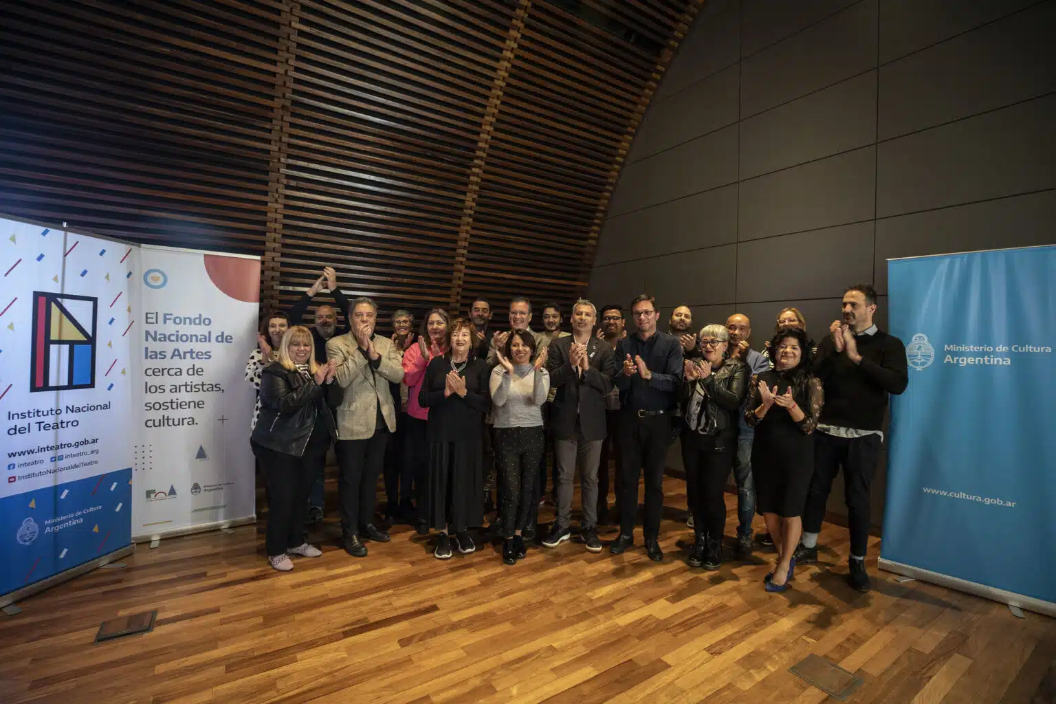 Del acto participaron el ministro de Cultura de la Nación, Tristán Bauer; el director ejecutivo del Instituto Nacional del Teatro, Gustavo Uano; la presidenta del Fondo Nacional de las Artes, Diana Saiegh; el director de Organismos Descentralizados, representante del Ministerio de Cultura en el INT e integrante del Directorio del FNA, Sebastián Berardi; la secretaria general del INT, Laura Vinaya; y el Consejo de Dirección del INT.