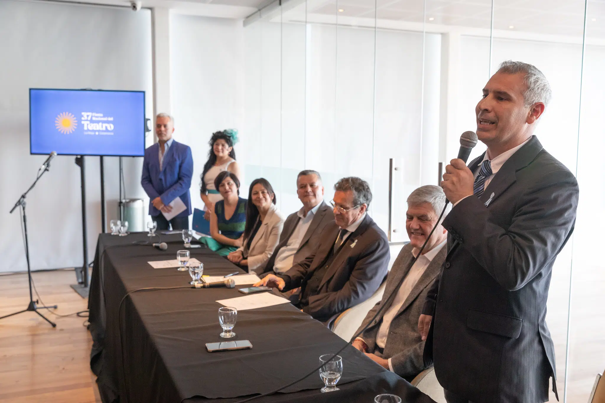 En el acto estuvieron presentes el ministro de Cultura de la Nación, Tristán Bauer; el director ejecutivo del Instituto Nacional del Teatro, Gustavo Uano; la secretaria general del Consejo de Dirección y Regional de Patagonia, Laura Vinaya; el ministro de Turismo y Culturas de La Rioja, Gustavo Luna; el ministro de Cultura, Turismo y Deporte de Catamarca, Roberto Brunello; la secretaria de Gestión Cultural de Catamarca, Daiana Carolina Roldán; y la secretaria de Culturas de La Rioja, Patricia Herrera fueron quienes estuvieron a cargo del anuncio.