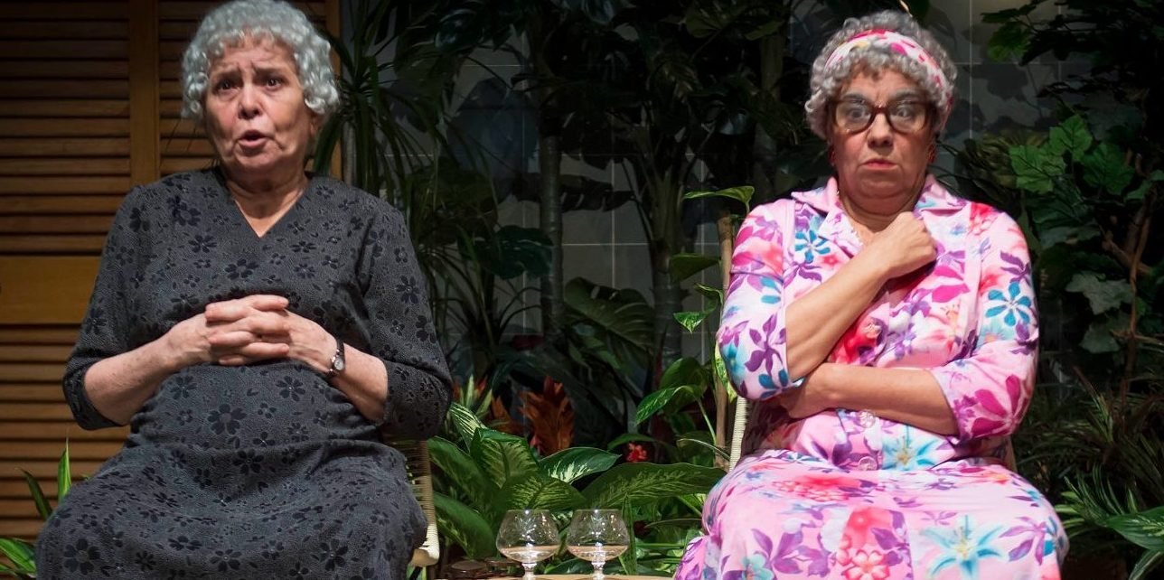 En "Cae la noche tropical", dos hermanas octogenarias que viven en Río de Janeiro evocan el pasado y departen acerca de los amores de una vecina más joven. Manso y Pelicori componen a estas dos hermanas entrañables que se niegan a darse por vencidas, y Guerty a la vecina, cuya historia las llena de vida. Una pieza en la que la vejez es vista como "la edad épica por excelencia" y el afecto como necesidad para paliar el absurdo del mundo.