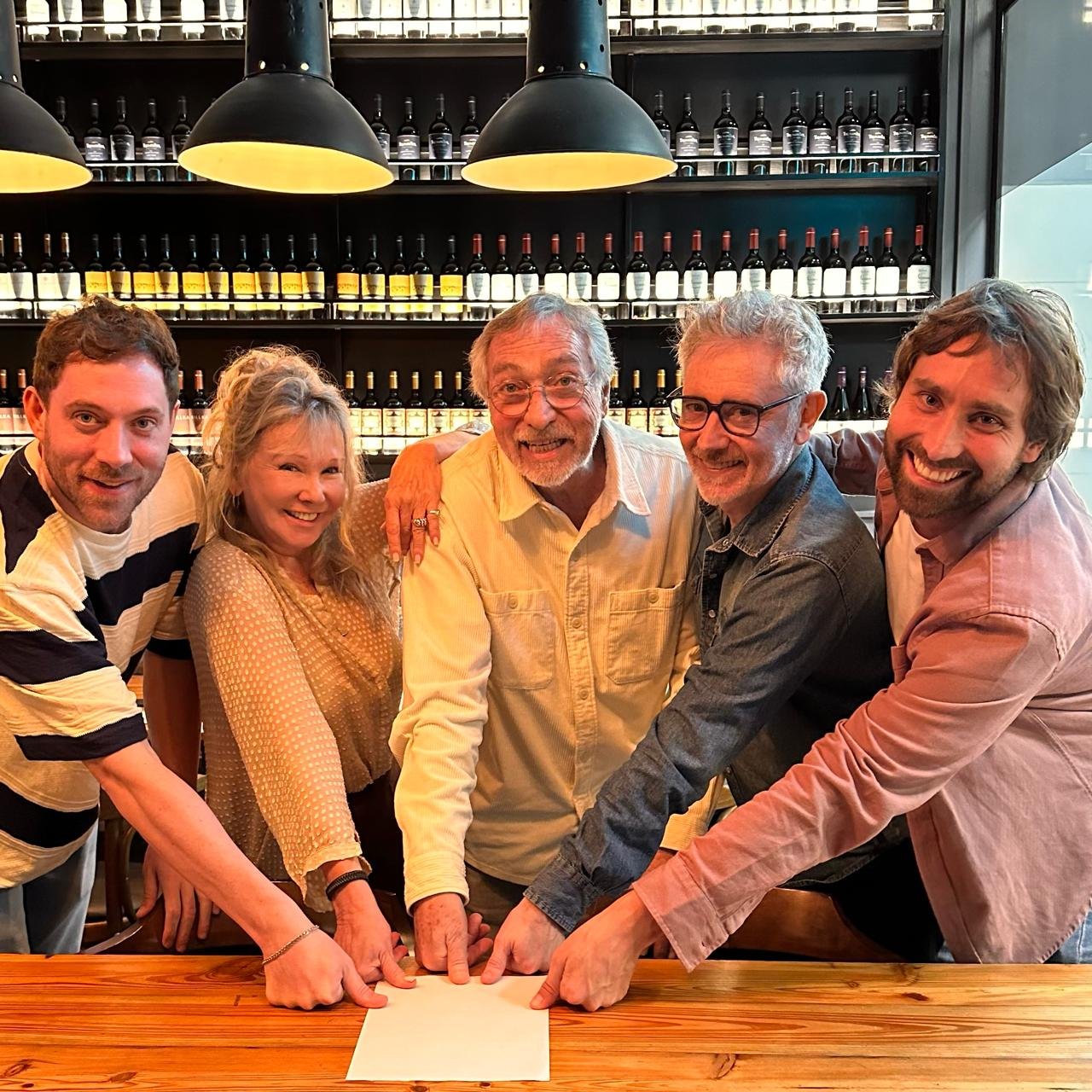 Beto y Solita, junto al director y los productores Tomás Rottemberg y Juan Manuel Caballe "Pusieron el dedo" a modo de formal contrato.